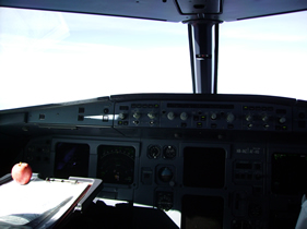 Der Autopilot wird jetzt ausgeschaltet und der PF übernimmt die Steuerung. Immer wieder korrigiert er mit gekonnten Griffen am Sidestick, um damit das Flugzeug der Landebahn auszurichten. Ein letzter überprüfender Blick auf die Instrumente und schon setzt unser Flugzeug sanft auf der kleinen Ferieninsel Kos auf.